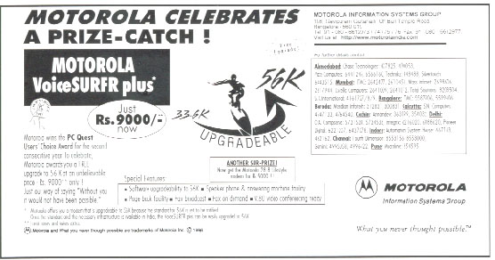 free upgrade to 56 K at an unbelievable price - Rs. 9,000 only !