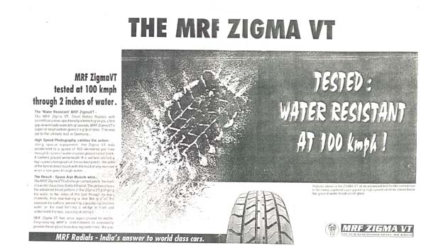 MRF ZigmaVT tested at 100 kmph through 2 inches of water in Germany