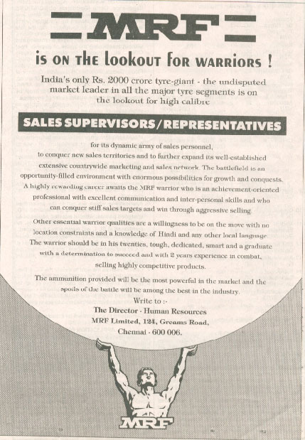 highly-rewarding career awaits the MRF warrior who is an achievement-oriented